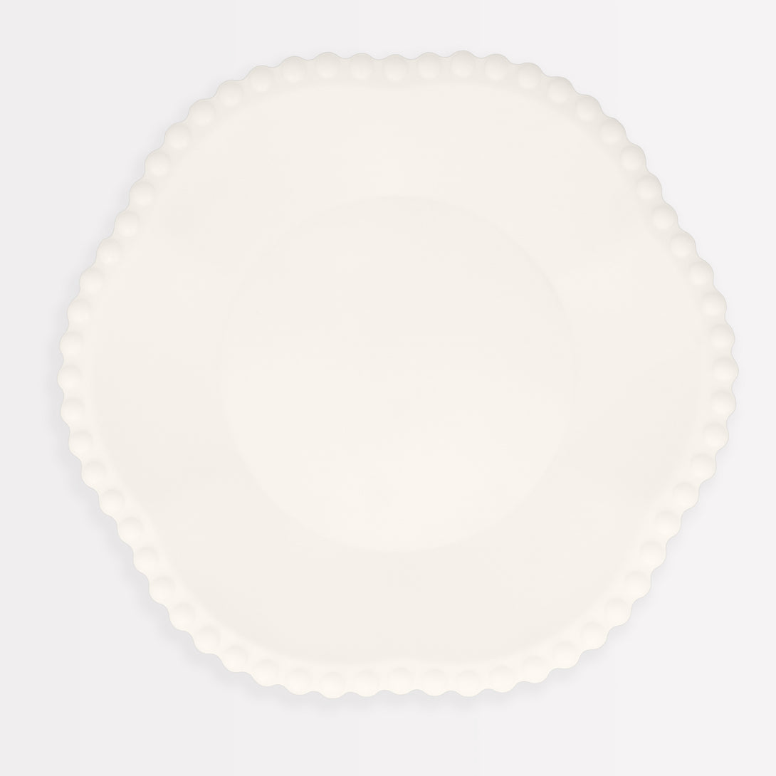 Just because a plate is only to be used once, doesn't mean it has to lack in sophistication! Our clever designers have created these compostable* plates with elegant shapes and styles, inspired by ceramics and porcelain, to make any meal look special. The combination of a classic cream colour and dot edge will look wonderful at a bridal shower, baby shower, afternoon tea or garden party.