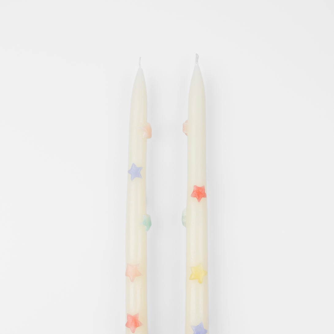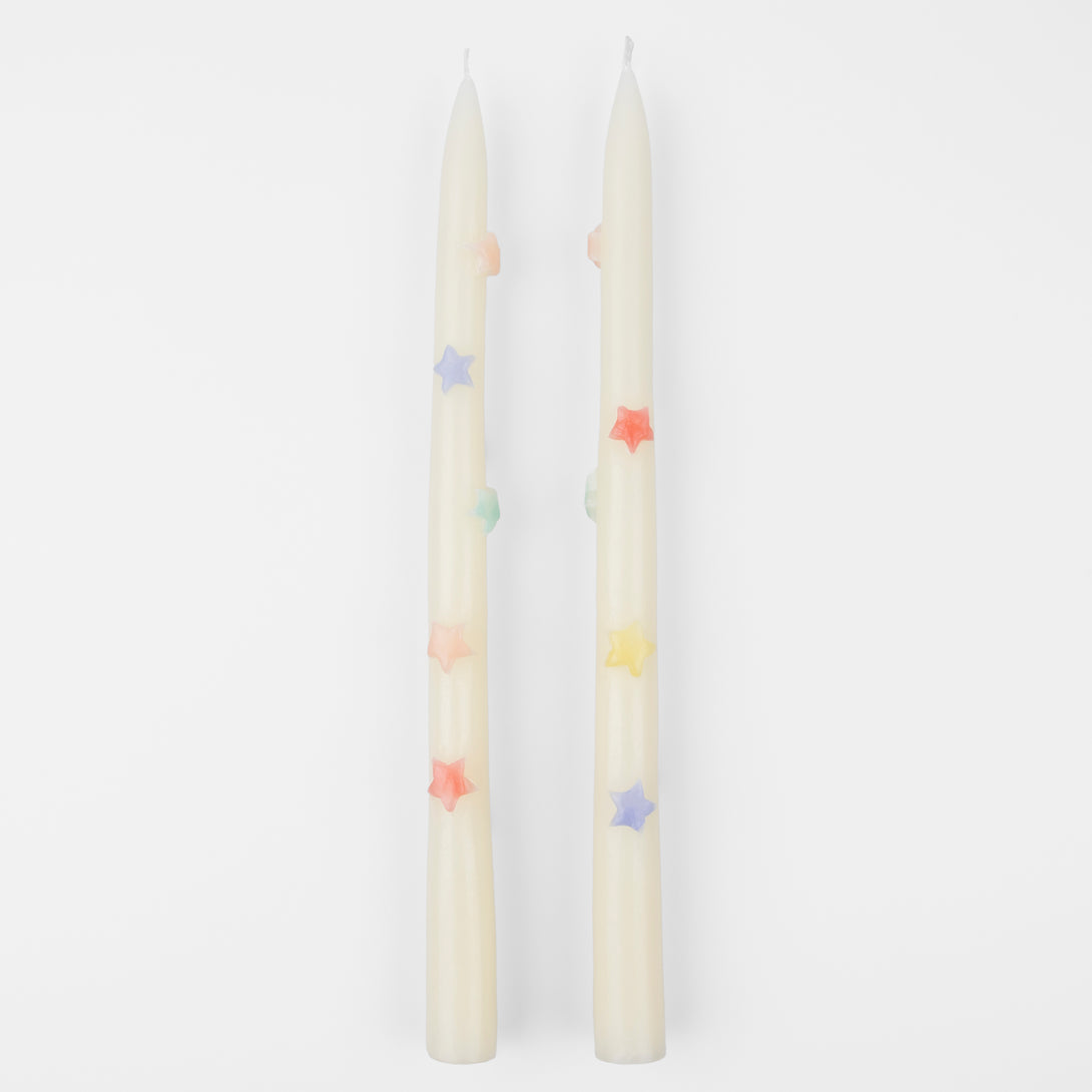 Give your home star quality with these stunning embellished taper candles. They'll make a statement on the mantel or party table. They're also a fabulous host gift.