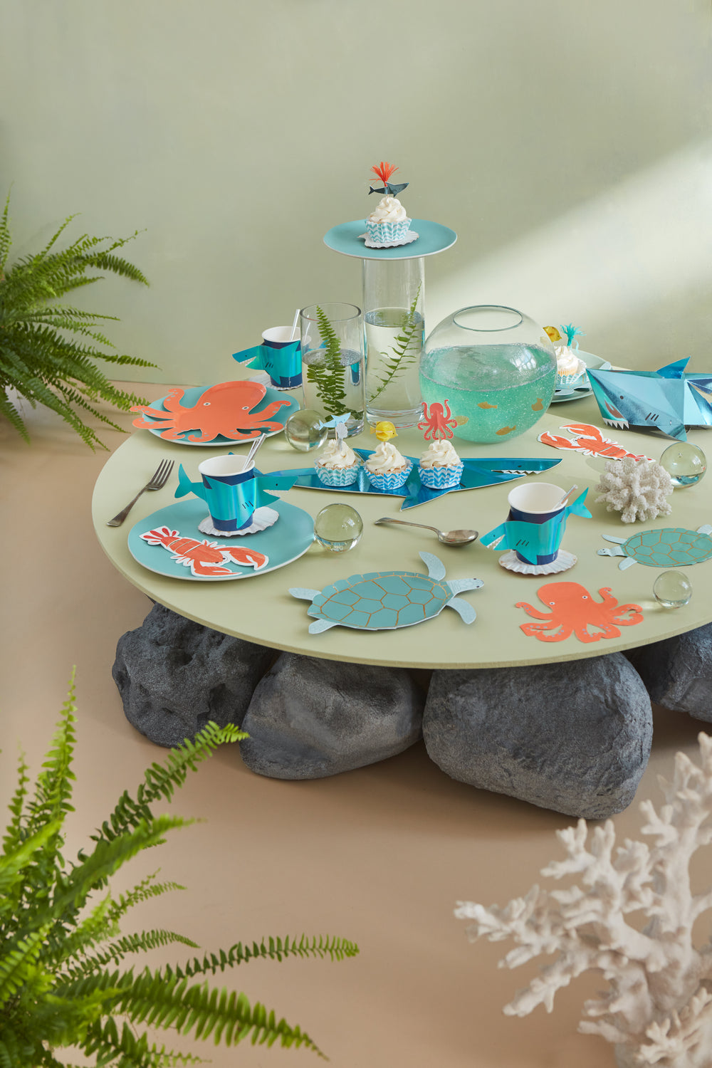 These amazing red octopus paper plates are perfect for kids under-the-sea parties, or for adult cocktail parties. The foil details give a wonderful shiny effect.