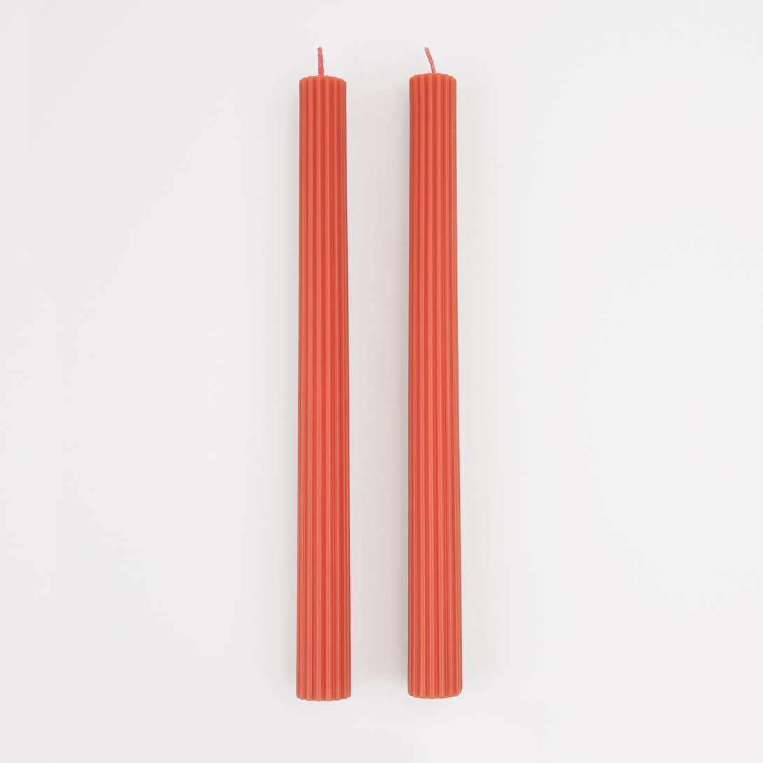 These striking coral-coloured candles have matching wicks with ridged details for an oh-so-stylish look. Use them to decorate your party table or mantel or give as a fabulous hostess gift.