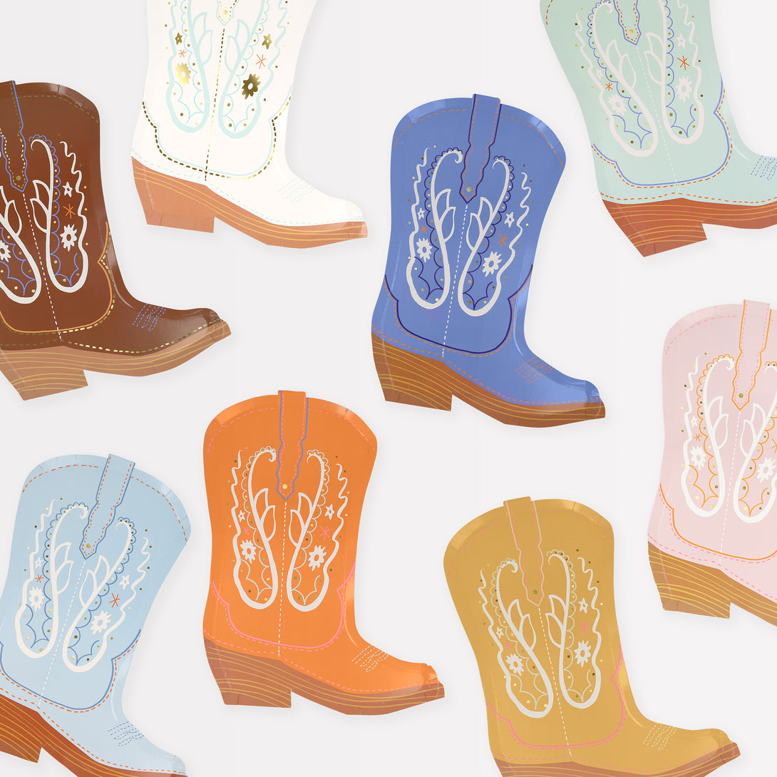 Yeehaw, it's time for a Western party! This theme evokes an adventurous vibe, with lots of opportunity for rustic charm, hearty food and dancing. A fun theme to celebrate a birthday party for all ages, a country music event or a BBQ. Bring the spirit of the frontier to life with these brilliant boot paper plates, the realistic design and mix of colours will add a playful decoration to your party table or buffet.